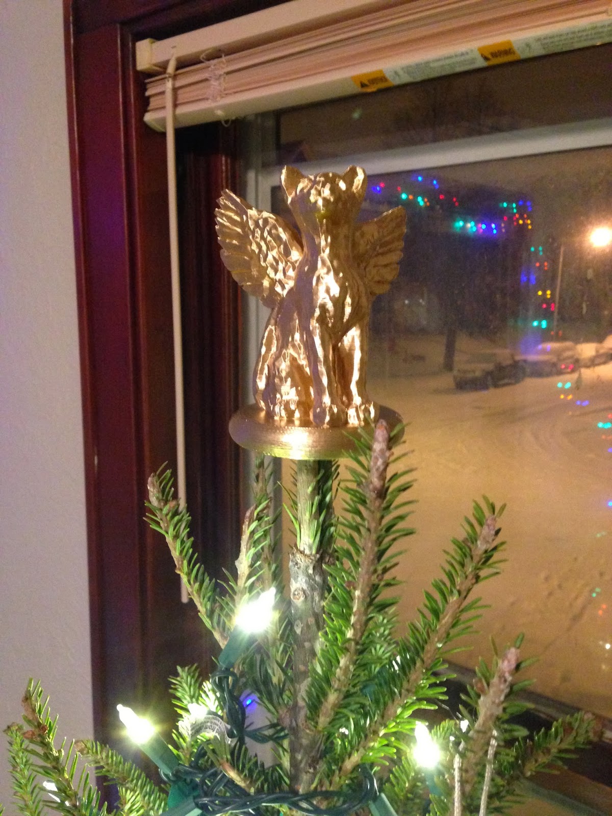 My next Holiday Project was designing this angel cat tree-topper. When we got our tree, Louisa jokingly said "We need a cat for the top." Eight hours later we had one! More details on thingiverse, here.
