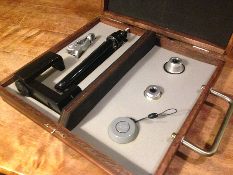 Louisa loved the iPhone photography kit I put together last year, so I made a revised kit as gifts for Louisa's parents and my sister-in-law. I found the pine boxes at Micheal's, then stained, laser-etched, and added hardware. I also designed custom laser-cut foam inserts to hold the equipment.